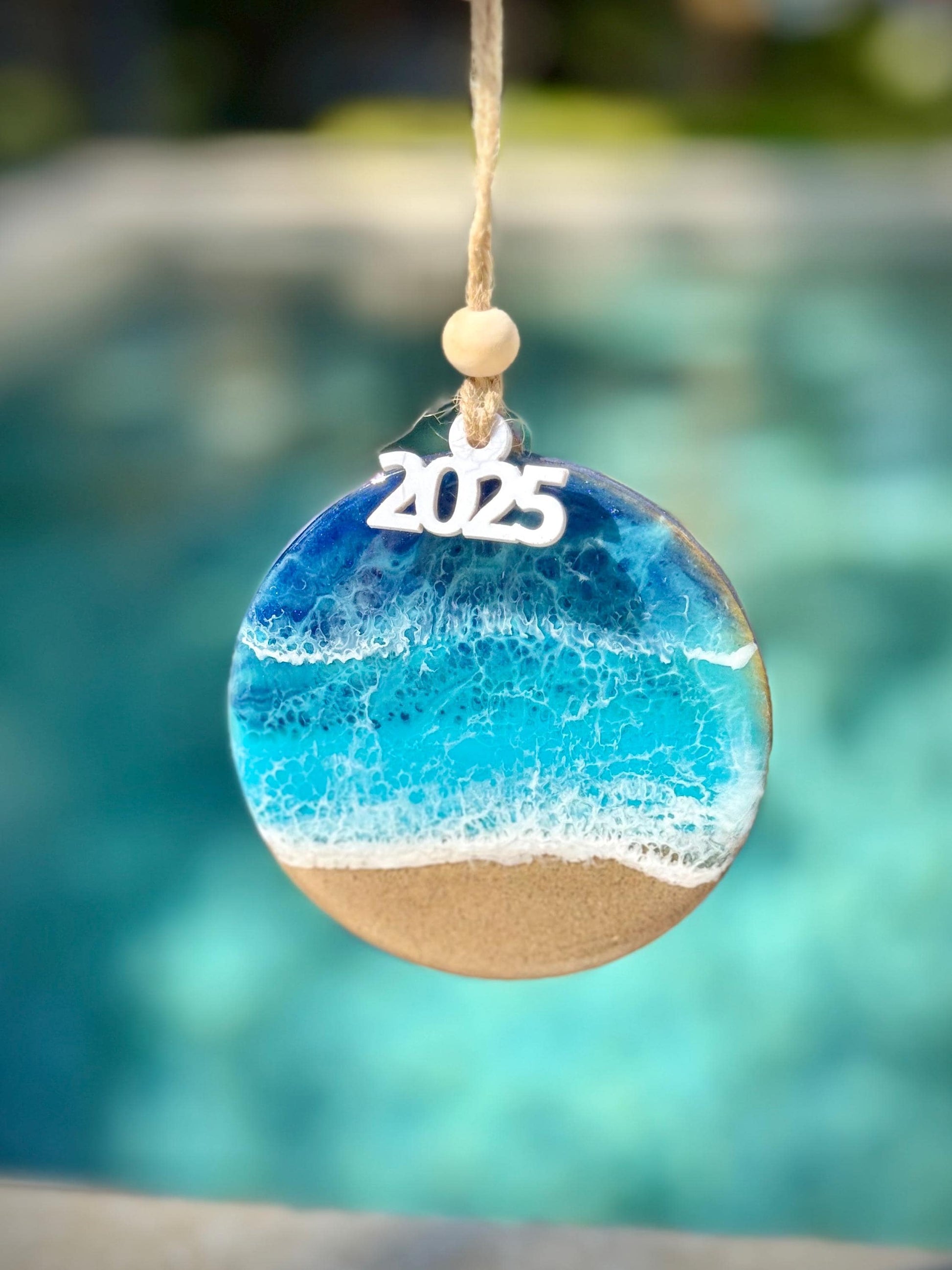 Ocean Waves Resin Ornament: Beach Themed Christmas Decor