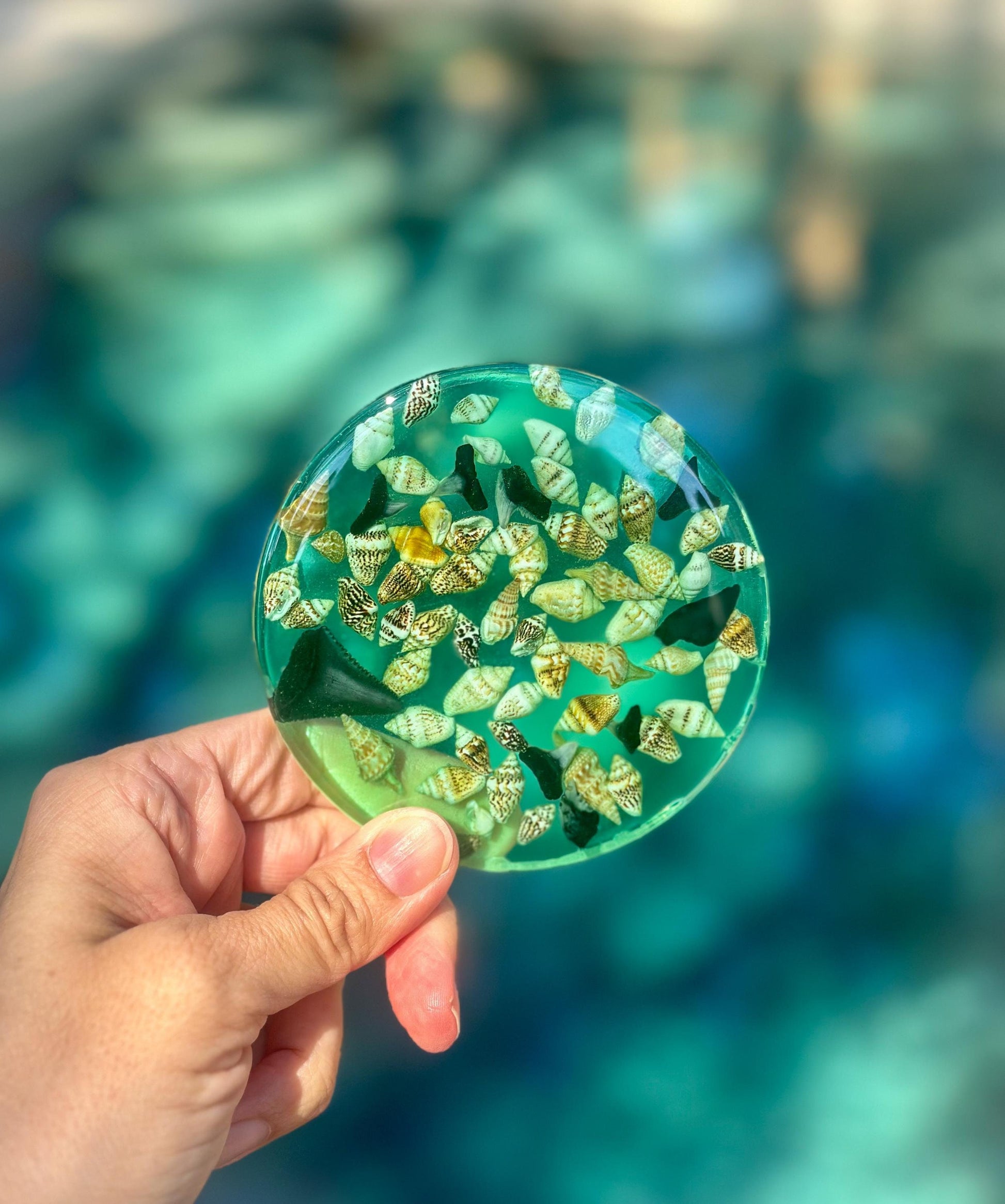 Please note due to the nature of working with resin each coaster will have its own unique shells and look but they will all closely resemble the pictures.