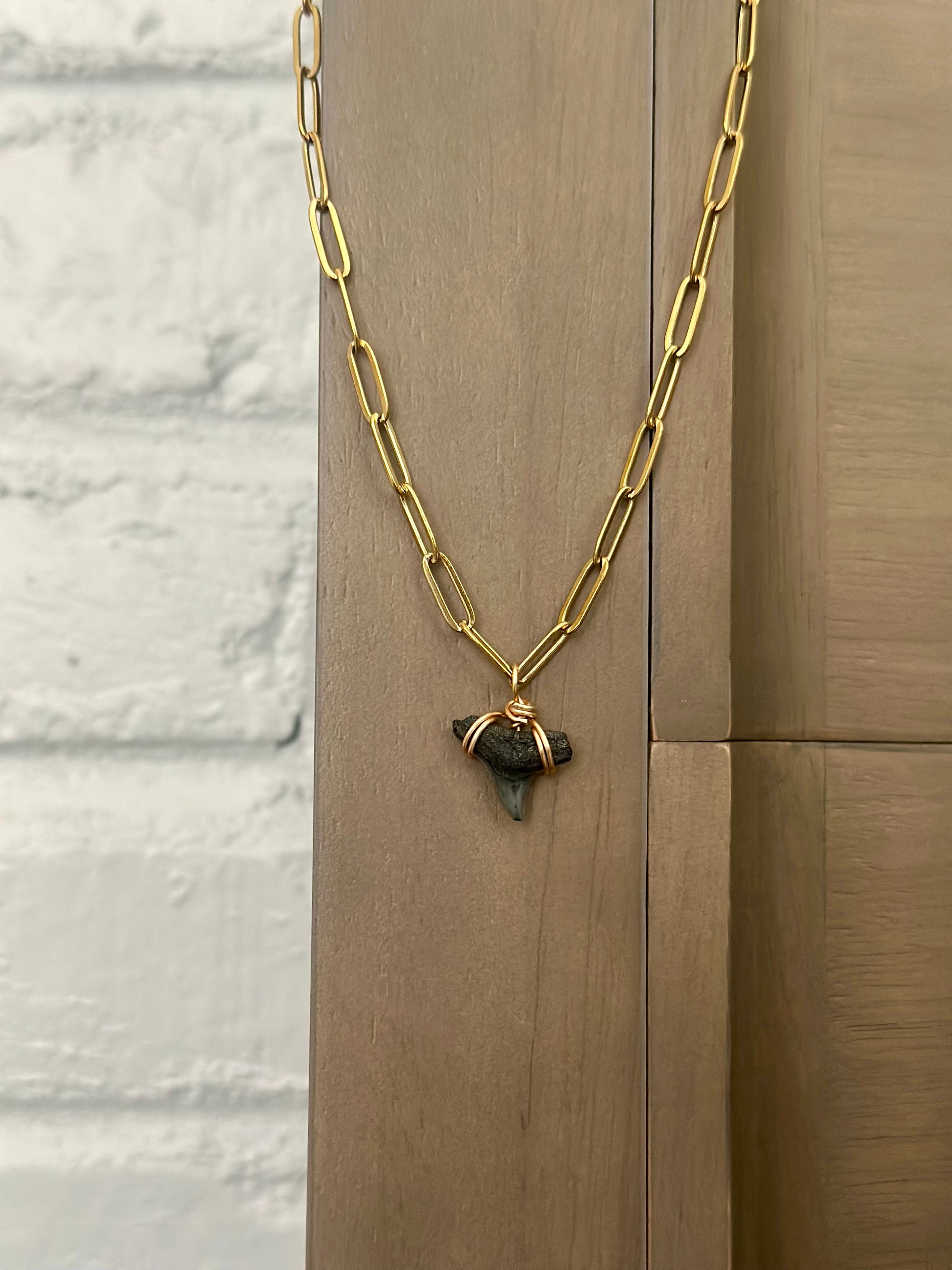 Shark Tooth Necklace - Paperclip Tarnish Resistant Gold Chain