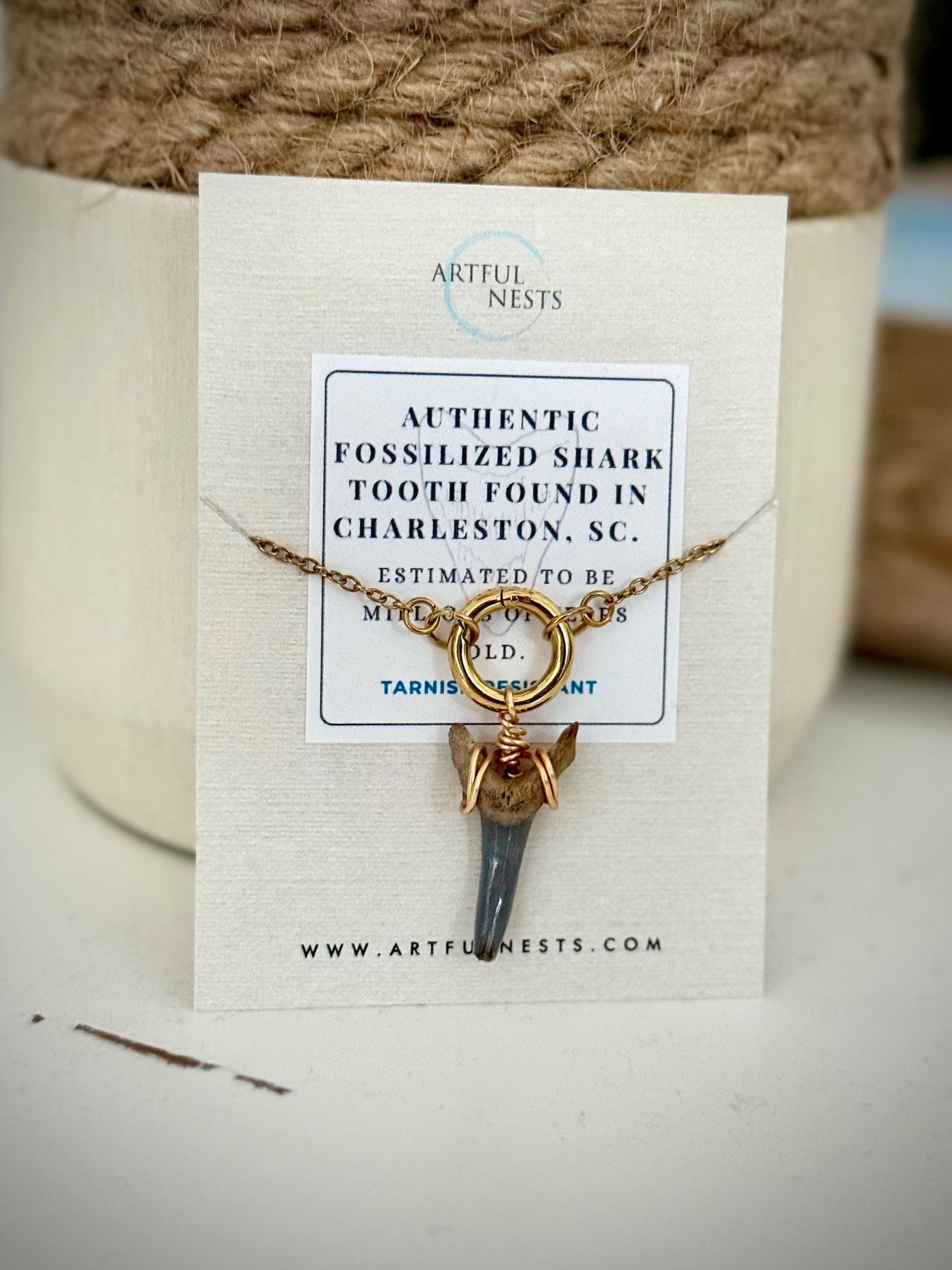 Bring coastal style to your everyday look with this shark tooth necklace, featuring a sleek gold premium stainless steel chain and modern charm clasp. Includes an authentic, fossilized shark tooth (found in Charleston, SC!), with the option to add a freshwater pearl charm for a soft, ocean-inspired accent. Crafted for durability and tarnish resistance, this piece is perfect for beach lovers, surfers, and anyone drawn to effortless seaside jewelry. A meaningful gift for birthdays, vacations, or summer style