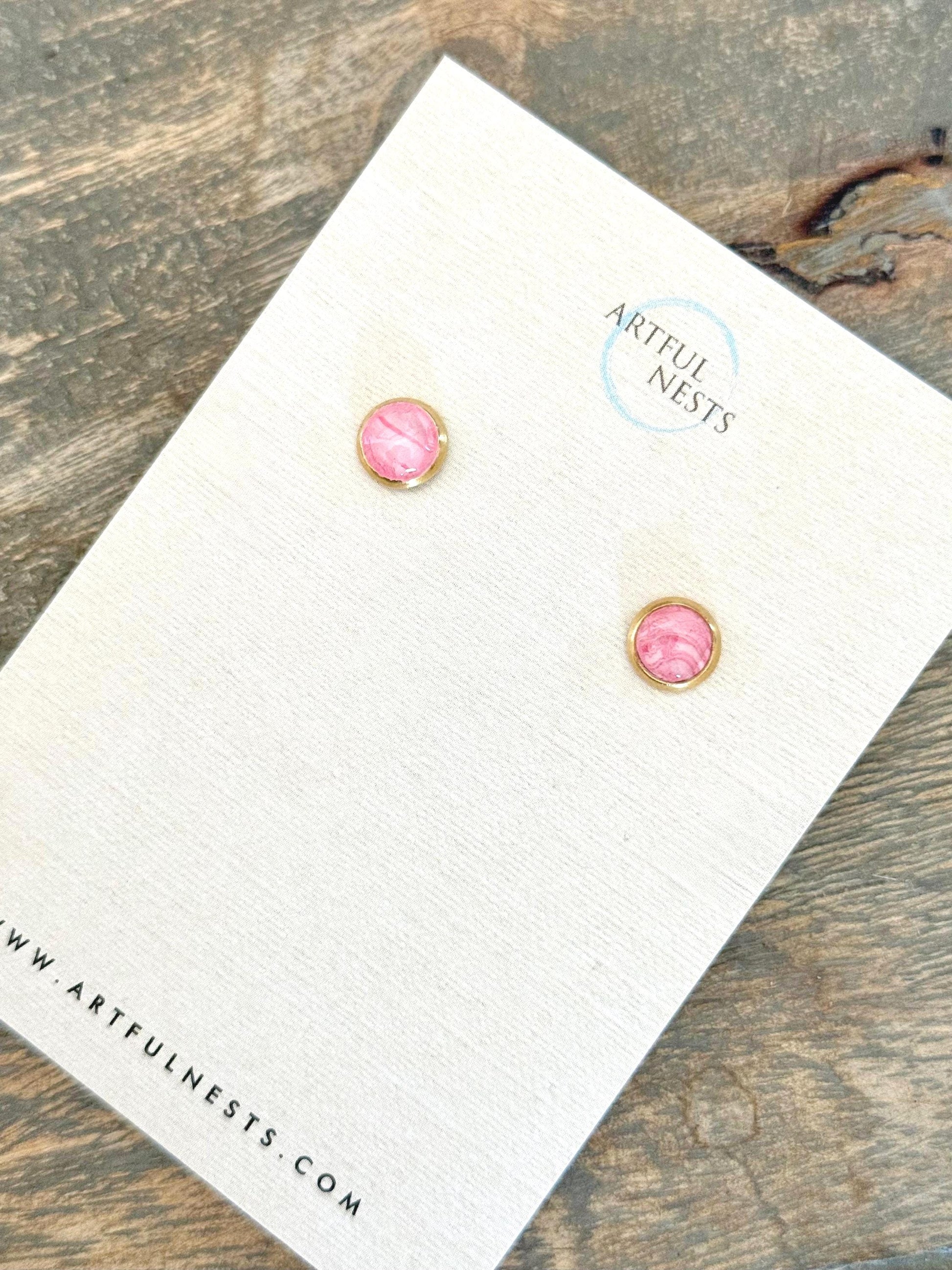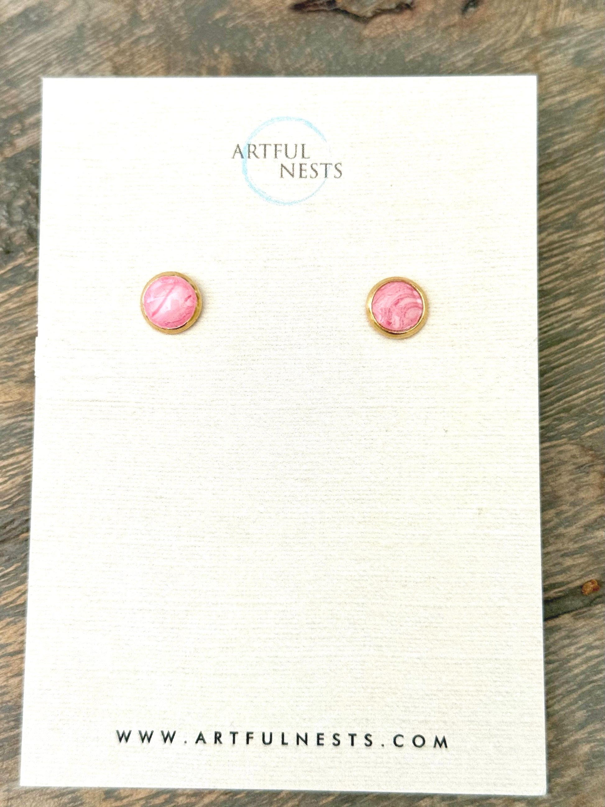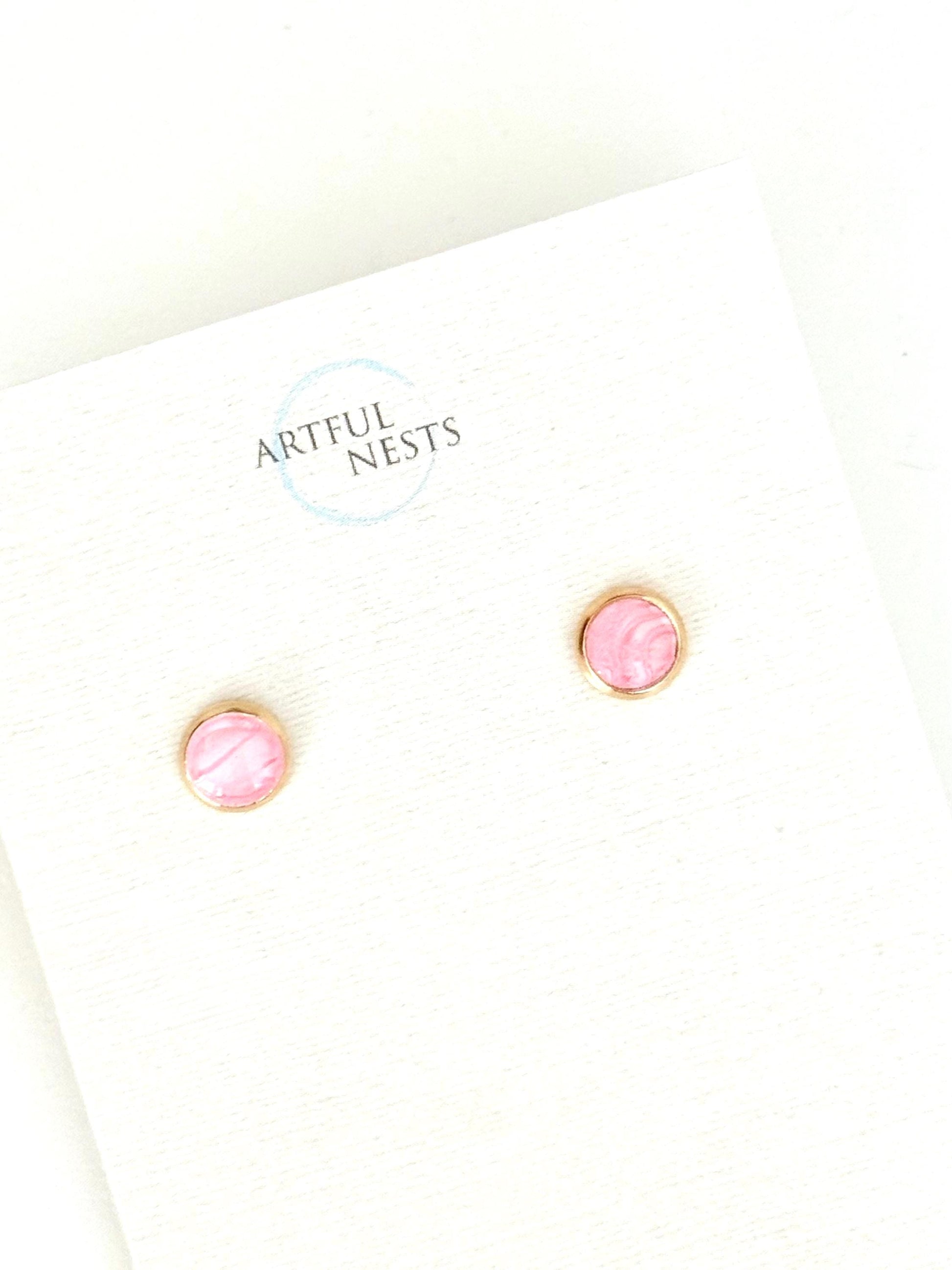 Simple Pink Round Stud Earrings - Hypoallergenic with Gold Stainless Steel